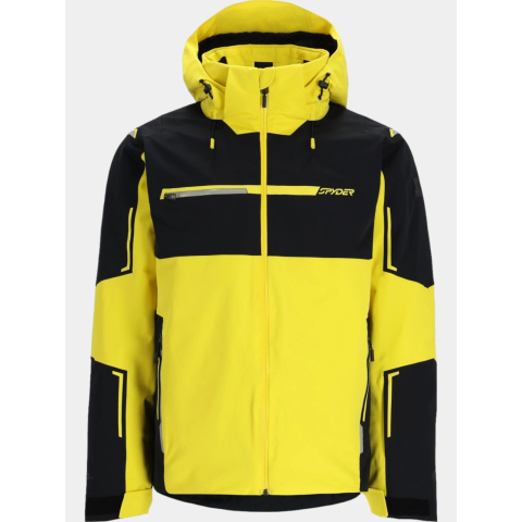 Spyder férfi A 100% újrahasznosított poliészterből készült Spyder Titan Jacket férfi síkabát a márka vagány sportdzsekije. A bukósisak kompatibilis, húzózsinórral állítható, levehető kapucni és a húzózsinórral állítható alsó szegély megvédenek a hideg széltől. Elülső cipzáras zsebeiben, belső cipzáras zsebében, hálós síszemüvegtartó zsebében, és értéktartó mellzsebében kényelmesen elférnek értékeid. A PFC-mentes DWR vízlepergető kezelés meg