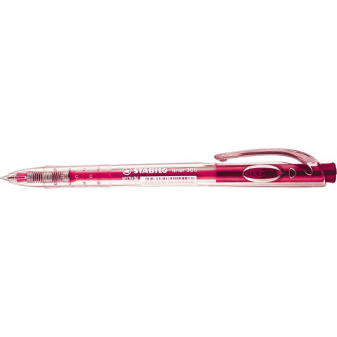 Golyóstoll, 0,38 mm, nyomógombos, STABILO Liner 308, rózsaszín - átlátszó tolltest - ergonomikus kialakítás - a tinta színével megegyező tolltest - nyomógombos tollszerkezet: speciális mechanizmus a tollhegy akadálymentes visszahúzására - kényelmes fog