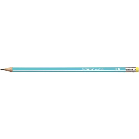 Grafitceruza radírral, HB, hatszögletű, STABILO Pencil 160, kék kiváló minőségű iskolai ceruza hatszögletű ceruzatest törésálló grafit bél karcolási keménység: HB radír véggel Gyártó/első EU forgalmazó elérhetősége: STABILO international GmbH Magyaro