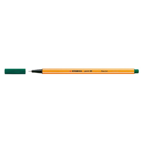 Tűfilc, 0,4 mm, STABILO Point 88, fenyőzöld - vékony és pontos írás - rozsdamentes fém hegy a hosszú élettartamért - hatszög alakú, világszerte ismert csíkos dizájn - műszaki rajzhoz kiválóan alkalmas - hosszú ideig nem szárad ki kupak nélkül - szellőz