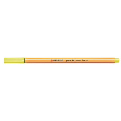 Tűfilc, 0,4 mm, STABILO Point 88, neon sárga - vékony és pontos írás - rozsdamentes fém hegy a hosszú élettartamért - hatszög alakú, világszerte ismert csíkos dizájn - műszaki rajzhoz kiválóan alkalmas - hosszú ideig nem szárad ki kupak nélkül - szellő