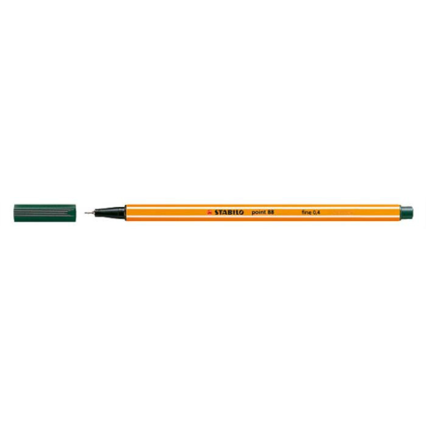 Tűfilc, 0,4 mm, STABILO Point 88, sötétzöld - vékony és pontos írás - rozsdamentes fém hegy a hosszú élettartamért - hatszög alakú, világszerte ismert csíkos dizájn - műszaki rajzhoz kiválóan alkalmas - hosszú ideig nem szárad ki kupak nélkül - szellőz