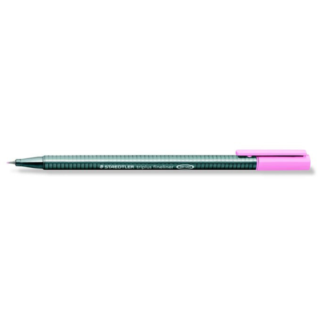 Tűfilc, 0,3 mm, STAEDTLER Triplus 334, rózsaszín -szupervékony, fémfoglalatú hegy -ergonomikus háromszögletű tolltest a kényelmes írásért -Dry Safe: napokig nem szárad ki kupak nélkül -vízbázisú tinta -a legtöbb textíliából kimosható -PP tolltest