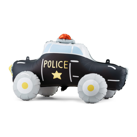 Standing foil balloon Police Car, mix of colors. Dimensions before inflation approx. 92,5x55 cm, dimensions after inflation approx. 90 x 41 cm. To be inflated with air. The set includes a straw.