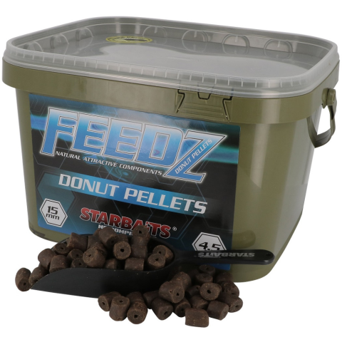 1 kép Starbaits Feedz Donuts Pellets furattal 15mm 4,5kg vödörrel, lapáttal (64128)