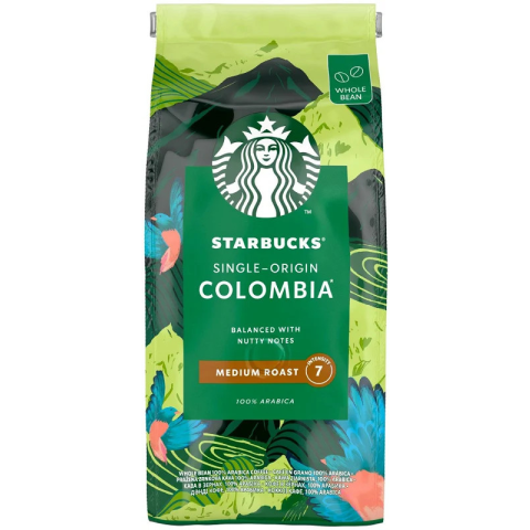 Élvezd otthonodban a Starbucks® Single-Origin Colombia kávé kiegyensúlyozott, diós ízvilágát! Ez a közepes pörkölésű, 100% Arabica szemes kávé a kolumbiai termőterület legjavát hozza el neked.
