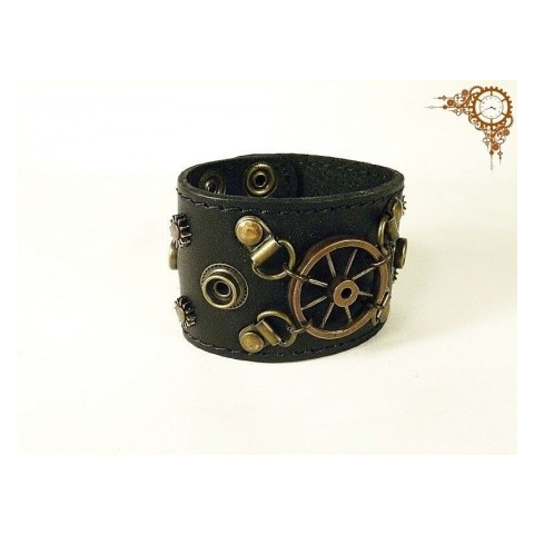 Steampunk bőr karkötő (sötét)