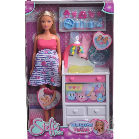 Steffi kisbabákat vár, mégpedig ikreket! Miután megszületnek, gondoskodik róluk, eteti őket, átcsomagolja. A csomagban találsz egy pultot is, ahol a babákat átpelenkázhatod és öltöztetheted, fürdetés után_x005F_x000D_ Steffi baba 29 cm