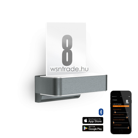 Steinel szenzorlámpa L 820 LED iHF Connect, kültéri, antracit Kültéri le- és felvilágító LED szenzorlámpa iHF nagyfrekvenciás érzékelővel, házszámmegvilágítással. Bluetooth hálózatba köthető, így egymást is tudják vezérelni. Android és iOS alkalmazásból