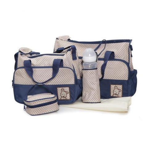 STELLA kismama táska 5dbos szett, pelenkázólappal KÉK/BÉZS pelenkázótáska 1 kép