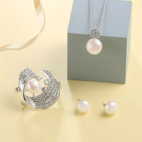 Elegáns Ékszerszett Édesvízi Gyönggyel és Cirkonnal ✨ Ez a gyönyörű ékszerszett három elegáns darabból áll: egy finom nyakláncból, egy pár elegáns fülbevalóból és egy feltűnő brosstűből. Prémium ezüstözött kivitelben készült, törtfehér édesvízi gyön...