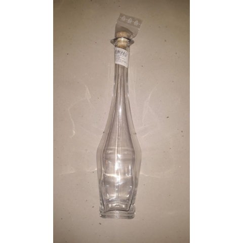 Ecet-ill.olaj tárolására szolgáló dekoratív üveg parafadugóval. Űrtartalma: 35 cl (350 ml), magassága dugó nélkül: 28 cm.