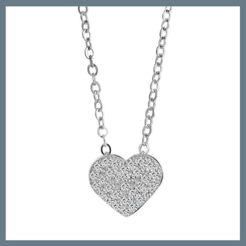 Sterling ezüst nyaklánc szív medállal 5350044Időtlen eleganciát sugároz, és a szeretet szimbólumát hordozza. A 925 sterling ezüstből készült lánc és a szív alakú medál aprólékosan kidolgozott, csillogó cirkóniakövekkel díszítve. A ródium bevonat fényes és tartós felületet biztosít, miközben védi az ékszert az elszíneződéstől.Termékjellemzők:Anyag: 925 sterling ezüst, amely tartós és allergiamentes.Ródium bevonat: A kopásállóság és a hosszú táv