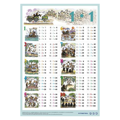 Könyökalátét, kétoldalas, A3, STIEFEL Szorzótábla vízálló, kétoldalas A3 méretű alátét Az egyszeregy a matematika alapja. Ezzel a munkalappal játékosan elsajátítható a szorzótábla 1-10-ig. Gyakoroljon együtt gyermekével a hátoldalon, ahol az eredmények