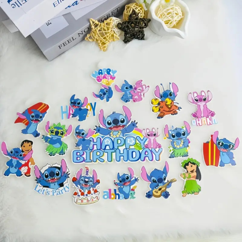 1 kép Stitch Happy Birthday papír tortabeszúró,tortadísz 16 db/csomag