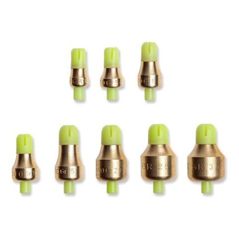 Speciális fenékmérő, nyomógombos szerkezettel ellátva, amely közvetlenül a horogra kapcsolódik, anélkül hogy károsítaná valamilyen szinten is a zsinórt. Sárgarézből készül műanyag foszforeszkáló részekkel. Kisméretű horgoknál is
