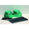 A készlet tartalma: 2x16m és 2x8 m-es szalag gyuruvel, 8 db leszúró bot, 8 db gumiszalag