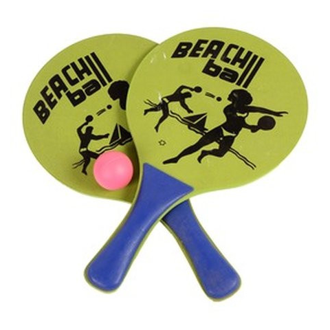 Strandtenisz ütő készlet labdával Üssétek egymásnak a labdát Strandtenisz ütőkkel! A Strandtenisz ütő készlet labdával két kisebb nyelű ütőt és labdát tartalmaz, amikkel a vízben is lehet játszani A Strandtenisz ütők Beach Ball felirattal vannak dísz
