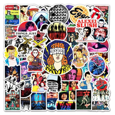 50 darab, vízálló Stranger Things matrica csomag, könnyen felhelyezhető és eltávolítható. Tökéletes dekoráció füzetre, laptopra, falra vagy ajándéknak