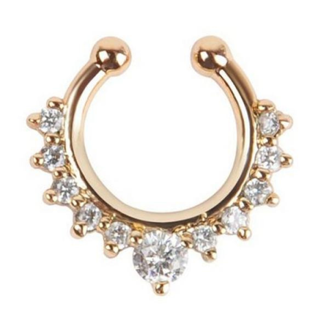 Elegáns strasszos hamis orrkarika, könnyen felhelyezhető és kényelmes viselet. Tökéletes álpiercing, amely csillogást és stílust kölcsönöz minden alkalomra