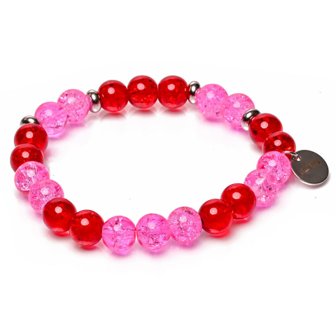 RUGALMAS KARKÖTŐ, a mérete választható.Az ékszer ásványai és tartozékai:– 8 mm-es piros és pink roppantott hegyikristály gyöngyök– Ezüst színű díszek– M.King márkajelzésű nemesacél logóbiléta.– Technika: rugalmas, tartós