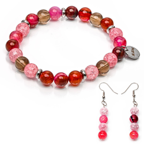 1 kép Strawberry Sunrise – Achát, hegyikristály és füstkvarc exkluzív ásvány ékszerszett (karkötő + fülbev