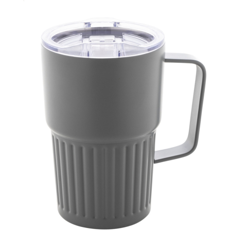 Duplafalú, újrahasznosított rozsdamentes acélból készült hőszigetelt thermo bögre ABS műanyag ivófedéllel. 470 ml.