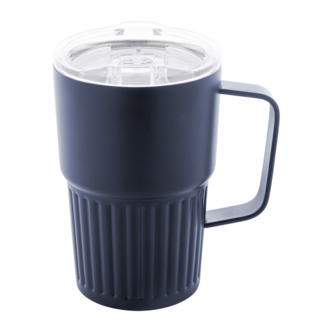 Duplafalú, újrahasznosított rozsdamentes acélból készült hőszigetelt thermo bögre ABS műanyag ivófedéllel. 470 ml.