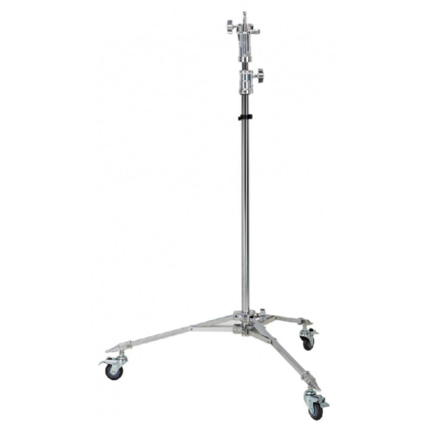 Rozsdamentes acél lámpatartóállvány kerekekkel - 450cm Ez a 4,5 méteres rozsdamentes acél állvány kerekekkel egy professzionális megoldás különböző feladatokhoz, legyen szó stúdiómunkáról, világítástechnikai alkalmazásokról, építési projektek támogatásáró