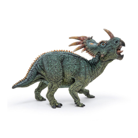 Merülj el a dinoszauruszok korában Papo Styracosaurus figurájával. Ez a késő kréta korú növényevő kicsiket és nagyokat egyaránt megörvendeztet valósághűségével és magas szintű részletességével.