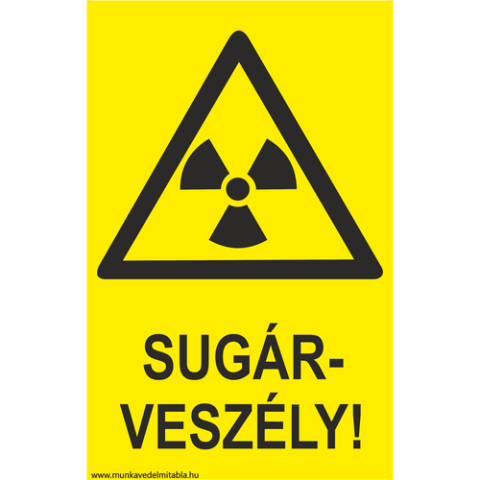 Sugárveszély! - műanyag, 160*240 információs tábla, állvány árgrafikon