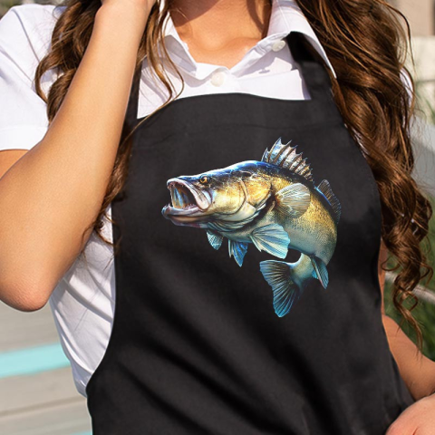 Halas kötények, süllő mintás kötény. Ha ismersz olyan horgászt aki a legbüszkébb a süllő fogó tudására és éppen neki keresel ajándékot, egy ilyen kötény teli találat lesz nála, hiszen kétféleféle színben is rendelhető és a vízpartra is bátran magával vihe
