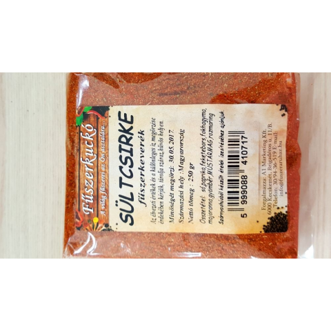 A sültcsirke fűszerkeverék kifejezetten a csirke ízének kiemelésére és gazdagítására készült. A keverékben található olyan fűszerek, mint a rozmaring, fokhagyma,paprika és majoranna, melyek tökéletes harmóniában állnak egymással. A csirkefelületét dörzsö