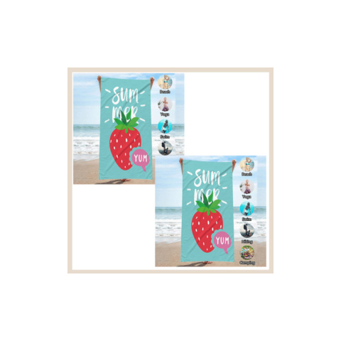 SUMMER YUM strand törölköző 1+1 akció ZTNREC54WZ72Használható strand törölközőnek, napozóágy takarónak strandra vagy piknik takarónak.Mikroszálas és gyorsan száradó anyagból készült, így könnyű, légáteresztő és kellemes tapintású.Nyomtatás csak az egyik oldalon, a másik oldal fehér. A szín nem fakul ki még sok mosás után sem. Méretek: 150cm x 70cmAnyag: poliészterSúly: 280Javasoljuk, hogy használat előtt mossa ki törölközőt a szövet és a nyomat el