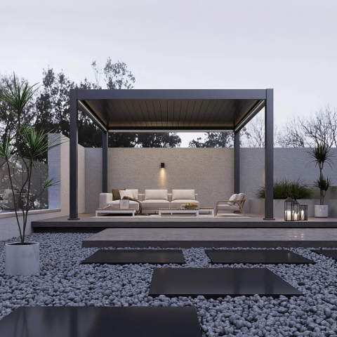 SUN DELUX PRO Motoros + Led világítás 4x4 m antracit terasz pergola kerti bútor termékleírás