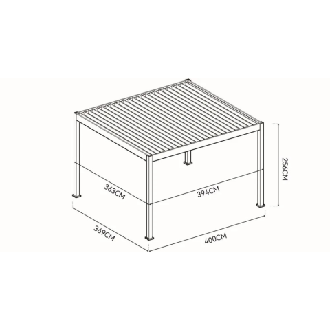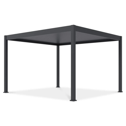 A SUN DELUX motoros + LED 3,6x4m antracit terasz pergola önálló tetőszerkezetként bármely kertben szabadon elhelyezhető, de közvetlenül az épülethez is rögzíthető. Teljes egészében alumíniumból készült szerkezete négy darab, 116 mm széles oszlopon nyugszi
