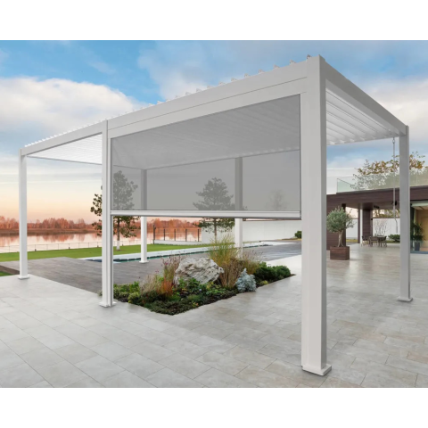 A lehúzható roletta SUN ELEGANCE/DELUXE/FUSION tökéletes megoldás a tér védelmére a szél és a nap ellen, valamint extra magánszférát biztosít. Elegáns és praktikus – Tökéletesen illeszkedik az SUN ELEGANCE/DELUXE/FUSION pergolákhoz, egységes és esztétikus