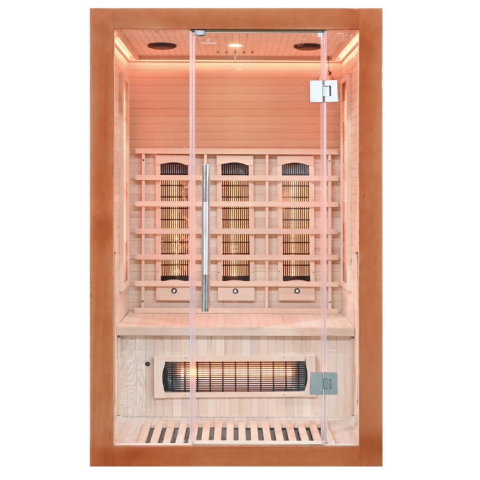 Sópaneles szaunánk tökéletes megoldás azok számára, akik értékelik a pihenést és az egészséget. Két ember számára készült, és számos egészségügyi előnnyel jár az infravörös technológiának és a sópaneleknek köszönhetően. Prémium fából készült, elegáns és t