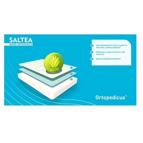 Saltea Super Ortopéd Matrac Aloe Vera-val: Kényelmes és egészséges alvás 😴 Élvezze a pihentető alvást ezzel a kétoldalas, rugók nélküli ortopéd matraccal! A Saltea Super Ortopéd Matrac 140x200 cm-es méretével tökéletes választás egyedül vagy párban a...