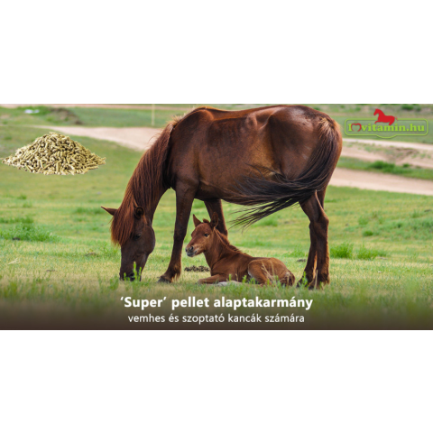 A Super pellet alaptakarmány vemhes és szoptató kancák számára készült magas energiaszintű, jó minőségű emészthető fehérje tartalommal, kalcium – foszfor csontképző- és egyéb fontos ásványi anyagokkal, aminosavakkal, nyomelemekkel és vitaminokkal. Pálmaol