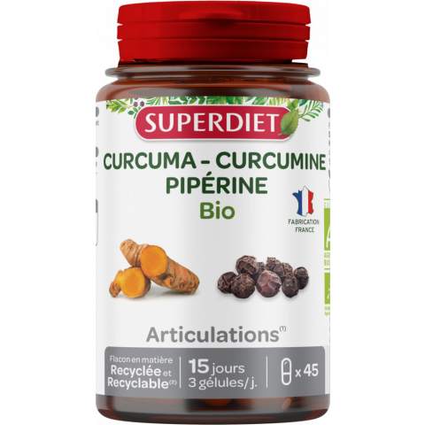 Tartsa meg ízületei rugalmasságát és hajlékonyságát minden nap a Superdiet Kurkuma & feketebors bio kapszula segítségével! A Superdiet egy olyan formulát alkotott meg, amely kurkumát, kurkumint és piperint tartalmaz: A kurkuma ismert arról, hogy hozzájár