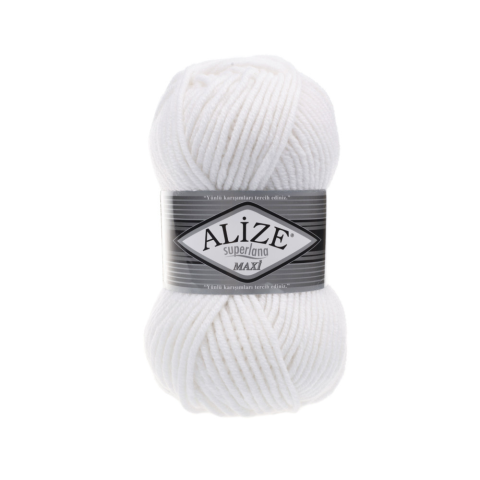 Súly: 100 g Anyagösszetétel: 25 % gyapjú, 75 % akril Szálhossz: 100 m / db Ajánlott tűméret: 8-10mm Az Alize Superlana Maxi vastag őszi-téli kötőfonal, mely 25 % gyapjútartalma miatt kötve és horgolva is finom meleg érzetet ad. A legtöbben pulóvert, k