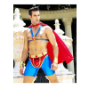 Superman 4részes szett.Szuper szép színes vizes hatású anyagból.Kék mellkas hám.Pörös köpeny.Piros,kék short.Csukló mandzsetta.