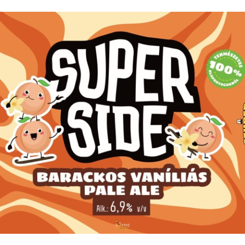 Barackos Vaníliás Pale Ale SUPERSIDE - Barackos Vaníliás Pale Ale A Super Barack - egy kerek, krémes kortyérzetű pale ale, amelyben a sárgabarack illata nyit, a háttérben pedig finom, lágy vanília simul a malátás alaphoz. Nem édes és nem savanyú
