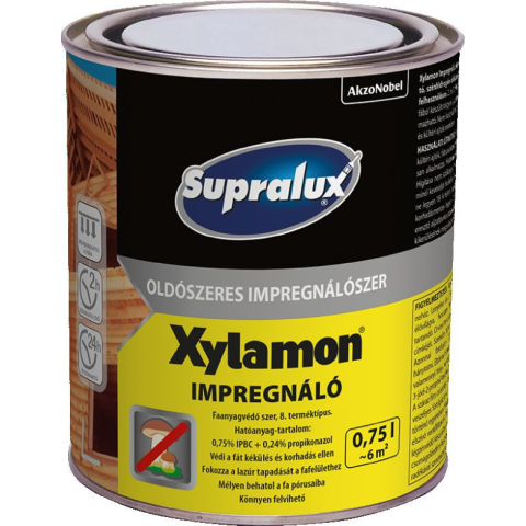 SUPRALUX XYLAMON OLDÓSZERES IMPREGNÁLÓ - 0,75L Védi a fát a kékülés és a korhadás ellen. Oldószeres impregnáló. Használatra kész, korhadás és kékülés megelőzésére alkalmazható, szénhidrogén oldószer alapú fakonzerváló szer lakossági és ipari felhasználásr