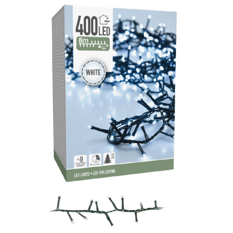 Sűrű fényfüzér 400 LED-es időzítős programos adapterrel hideg