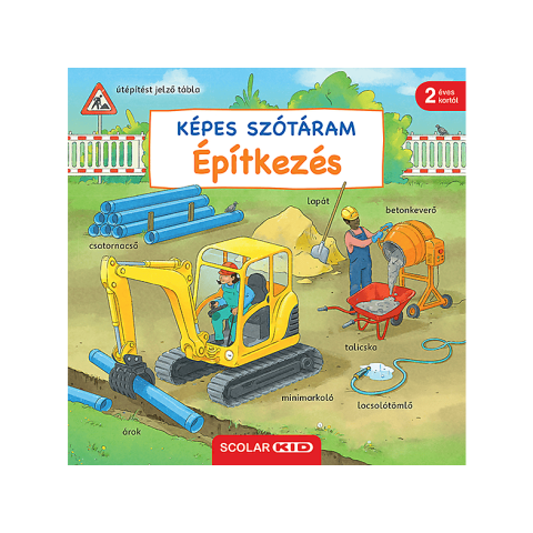 Minden építkezésen rengetegféle járműre, munkagépre és szerszámra van szu¨kség. Vajon melyiket ismerik a gyerekek? Ahogy a képes szótárt nézegetve megnevezik a tárgyakat, és beszélgetnek róluk, észrevétlenül fejlődik a szókincsük és a beszédkészségük.