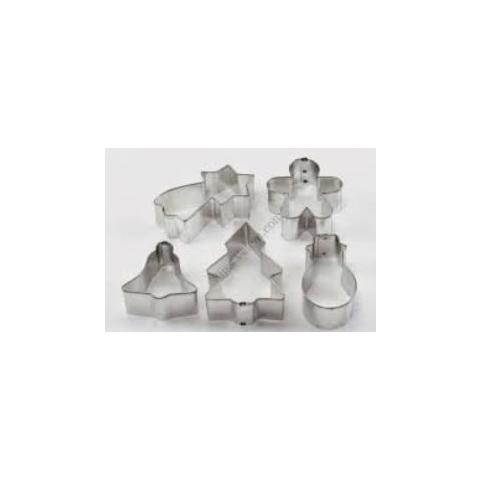 8-5,5cmX6-4cm, magasság:2,5cm Az 5 részes karácsonyi sütikiszúró készlet: karácsonyfát (mérete:7,5*5,5 cm) harangot (átmérője: 5,5*5 cm), hóembert (mérete:6,6*4 cm), mézit (mérete 6,5*6 cm) üstököst (8*4,5 cm) Magasság:2,5cm
