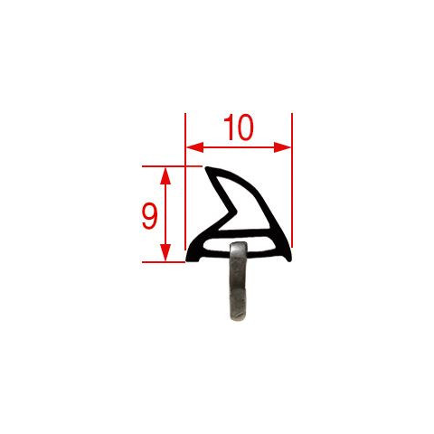 szilikon elasztomer | rögzítő kapcsokkal - 3 oldalon | profil méretek 10x9 mm | FEKETE SZÍN