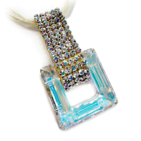 Swarovski Kristály Kocka Medál: Csillogó elegancia organza szalagon ✨ Ez a gyönyörű nyaklánc egy csiszolt Swarovski kristályból készült kocka alakú medállal rendelkezik, melyet kézzel ragasztott, csillogó Swarovski kristályok díszítenek. Az organza...